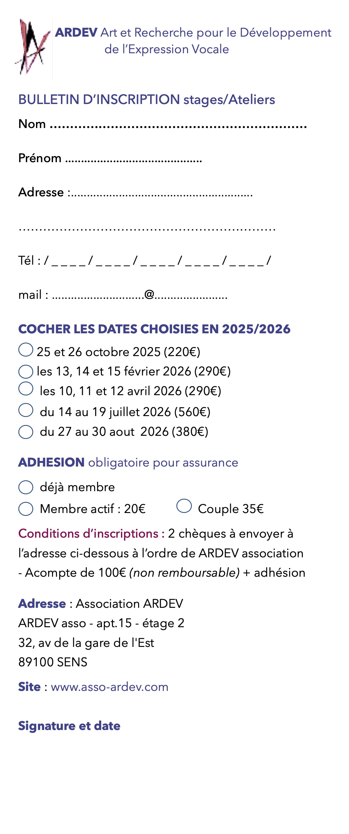 Le soir (30 min), un temps de relâchement et de recentrage aidera à intégrer le travail vocal de la journée et à revenir au calme.